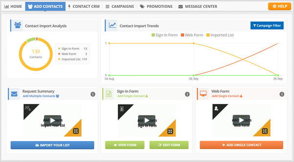 You can not run a campaign without any contacts, so we created the Add Contacts tab for you to add contacts easily.
