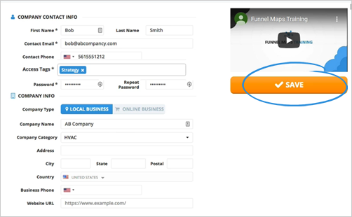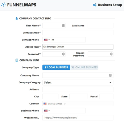 Step 1. When setting up the business inside of Funnel Maps, you are going to fill in the general information of the business contact and company information.