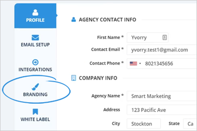 In case you did not complete this process during the initial setup or you want to modify your Agency’s Branding, all you need to do is go to the settings area.
