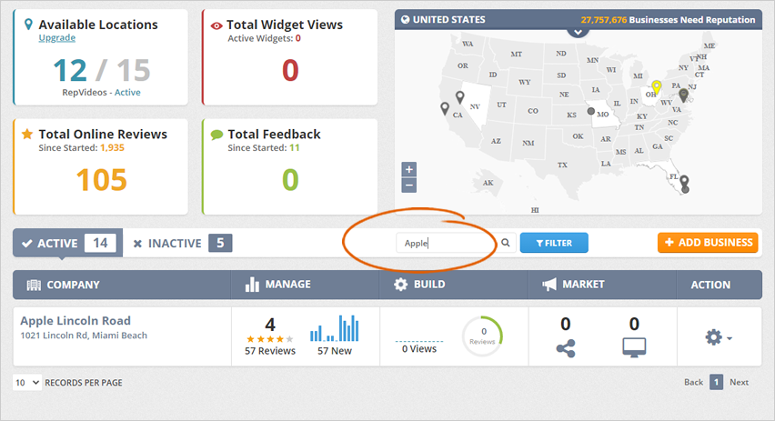 The Agency Dashboard lets you view all the tools that you need to increase your reputation online. It displays all statistics which will help you to quickly and easily know what is happening in each of your locations.