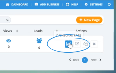 Step 7. Under the Actions tab, click on the Dashboard Page icon.