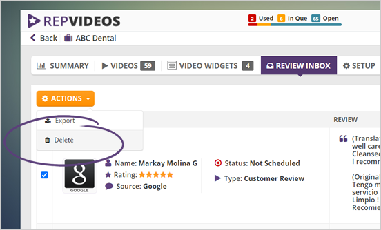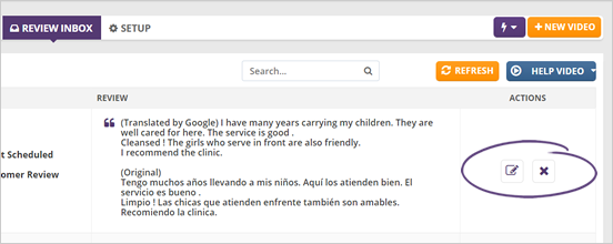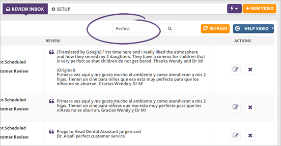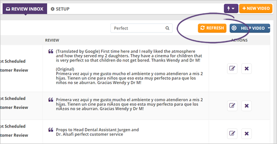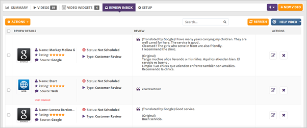 You will find the reviews for your business that you have set up in the Review Inbox. These are the reviews that you will be using for your video creation once you decide to create a new video.