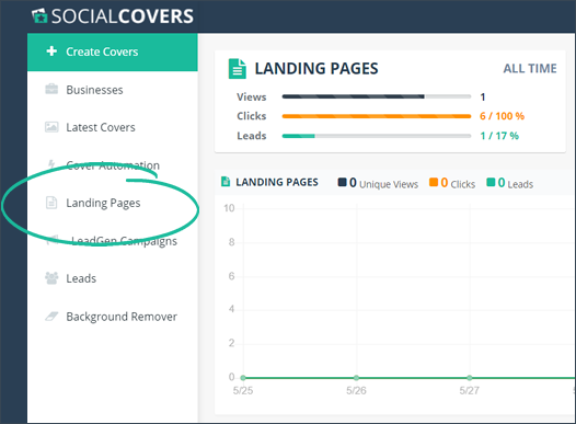 Step 1. From the main dashboard, click Landing Pages.