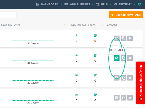 Step 2. Click the Edit Page icon on the landing page that you want to set up.