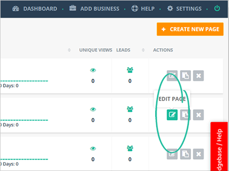 Click the Edit Page icon on the landing page that you want to access.