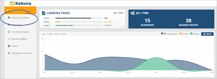 When you say contacts, they are all the Businesses that you created inside of Ad Kahuna. These contacts can all be accessed in the Business Contacts section.