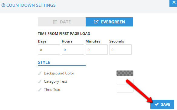 5. To set a timer that starts when the page is first loaded, click Evergreen. .