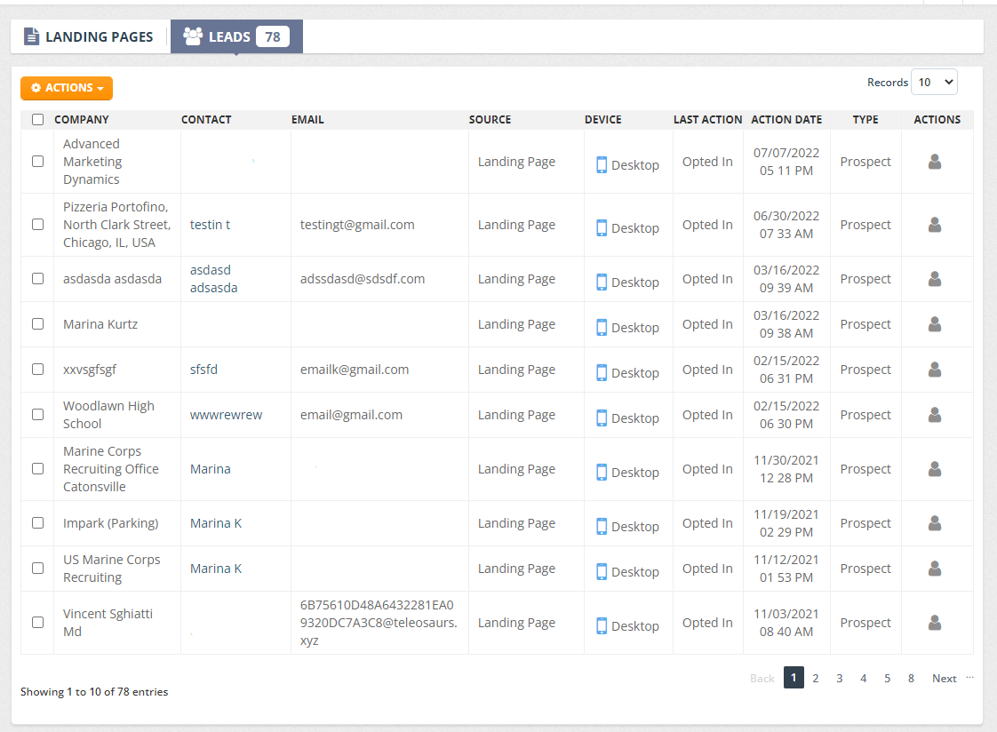 In this article, we will go over the leads dashboard that will collect the information about each lead that opted in through the Demo widget or the landing pages you had set up in Review pops or Rep Kahuna.