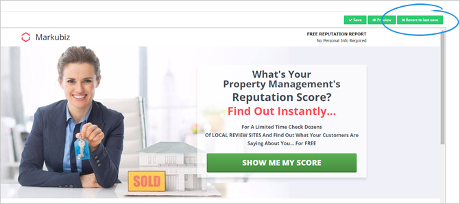 4. To revert your last save, click Back to Dashboard, click Edit Page, and click the Revert to last save.