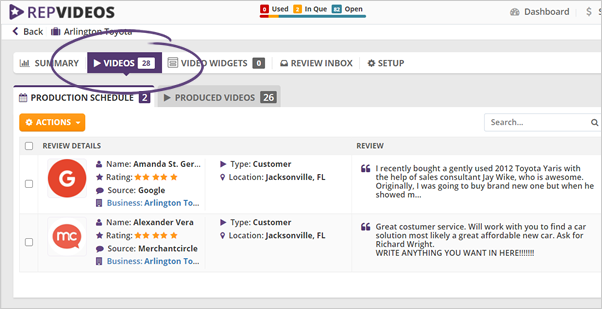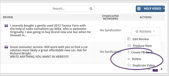 Step 2. Under the Production Schedule tab, click Actions on the review that you want to delete, and select Delete from the drop-down.