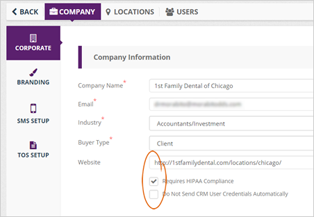 Step 3. On the Corporate tab, tick the Requires HIPAA Compliance checkbox. We will hide the full name of the patient leaving the review.