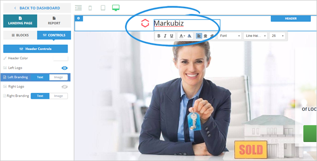 13. If you selected Text Branding, click the element on the editor and type in your branding.