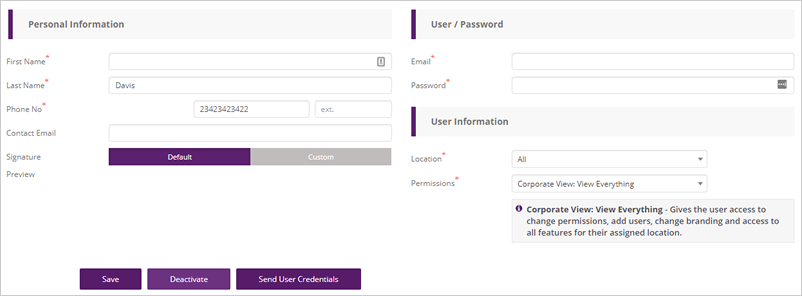 Step 5. On the user window, edit the Personal Information or Login Credentials.