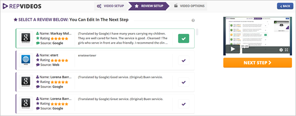 In your Video Wizard Step 2, we will research the online directories for any reviews that are available for this business. If there are 5 Star Reviews found, we will pull them off and showcase them on this page.