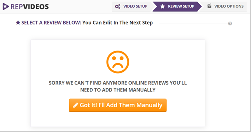 If there are no reviews found, you will be able to add reviews manually and go to the next step.