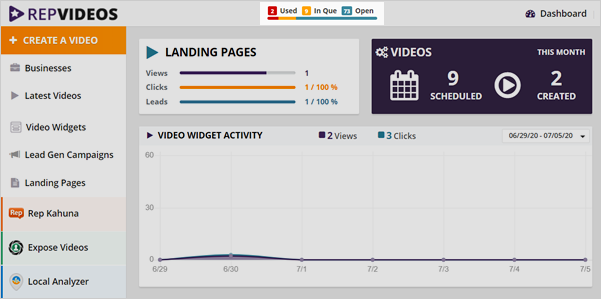 Once you have scheduled a review video (which is one credit), you will see that one credit will be "In Que." Once it is syndicated, it will go into your "Used" allocation.
