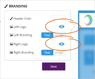 Step 5. If you don't want to use a logo (left or right) on your header, click the eyeball icon to hide it.