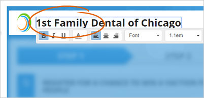 You can only change the business's text if the left or right branding you selected is text. Otherwise, you only change the business's logo.