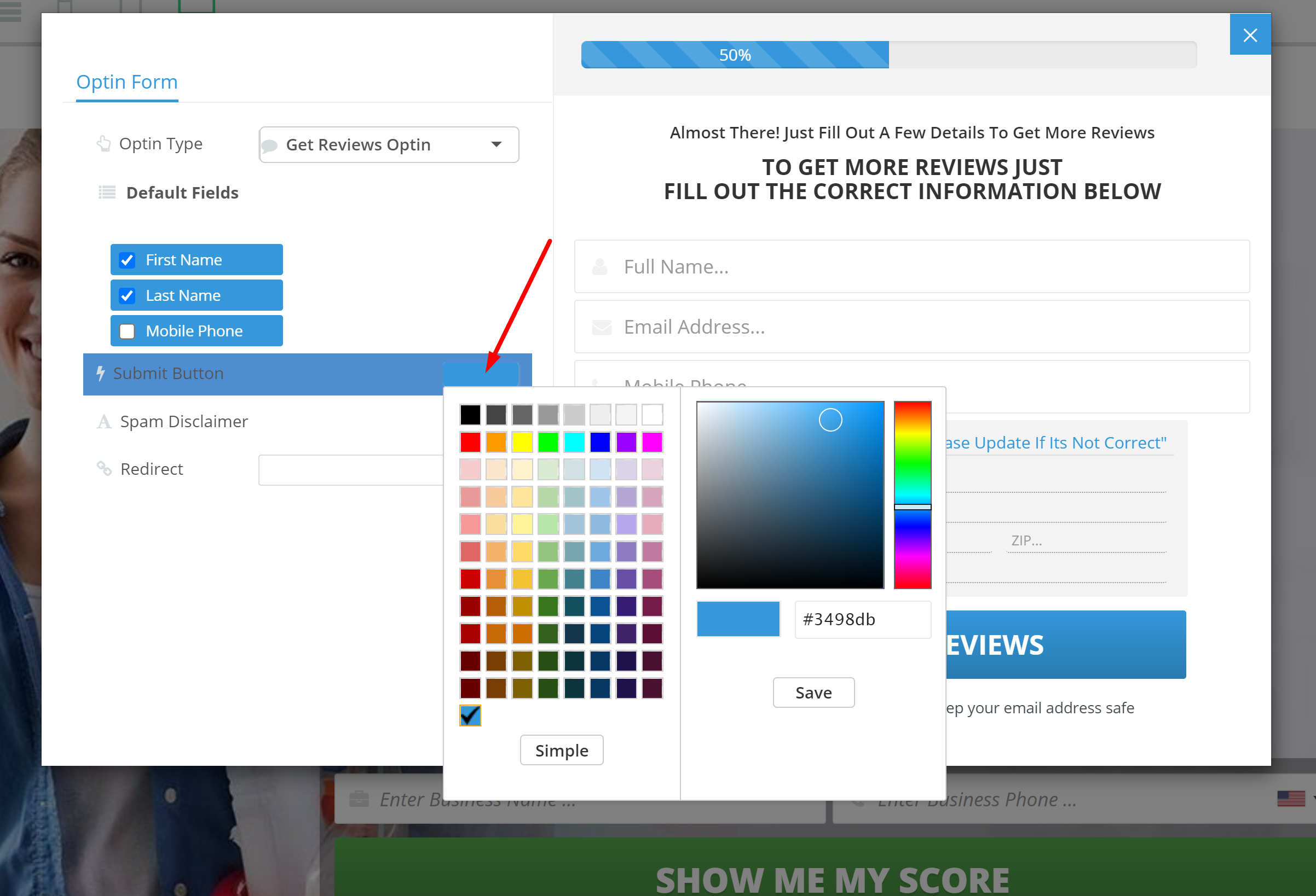 You can also update the header of the form, the color of the button, and a redirect if necessary (see below)