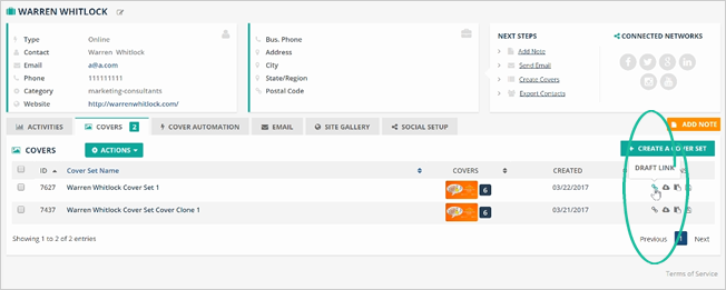 Next, go to the merchant's profile then go to Covers and click Draft Link.