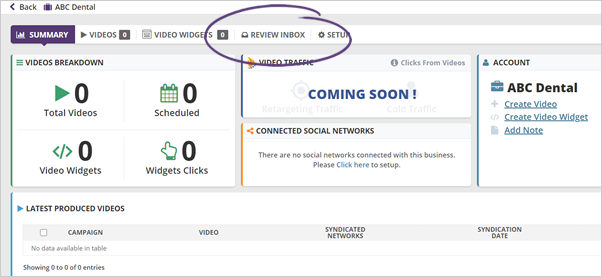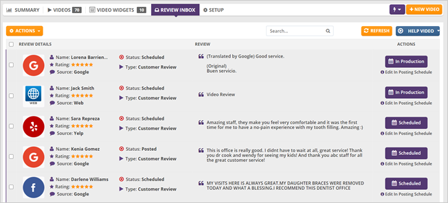 The Review Inbox contains all the buyer reviews that you can schedule to be produced or syndicated online. These are reviews that have been aggregated from the web, so you can select the review that you want to be scheduled and syndicated.