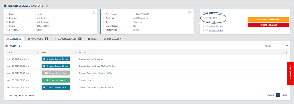 Add notes to keep track of your Leads and record information about the business that you are working on.