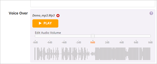 Once uploaded, you can edit the audio volume level by clicking play and moving the slider bar to the left or right.