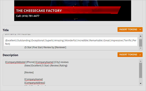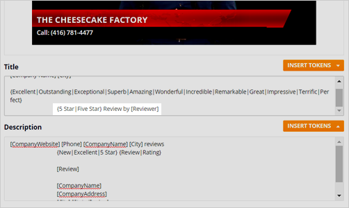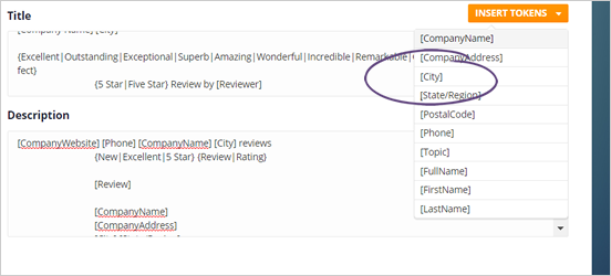 Tokens are similar to Microsoft Mail Merge variables where you have tokens that you enter into text and produce multiple reviews based on the same criteria. The tokens are found in the right area close to the title and description. Click the token that you want to add.