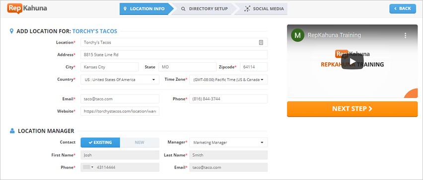 Step 6. Verify your Location Details. Once you are done, click Next Step.