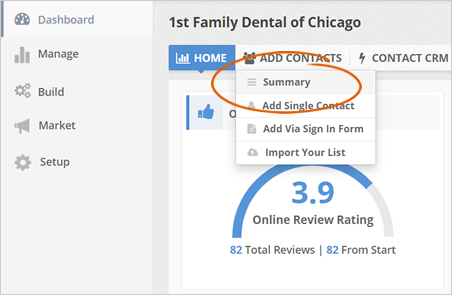 Step 2. Hover your mouse over the Add Contacts tab and select Summary.