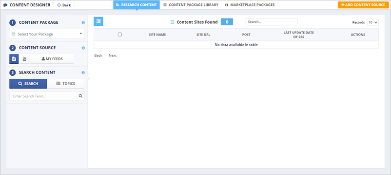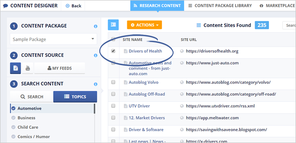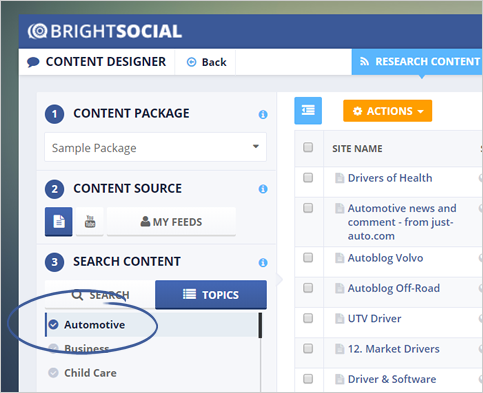 Step 6. Next you will be to either research keywords for your prefered topics or Select the appropriate topic from the Topics tab for your Content Package.