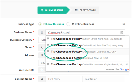 Once the name of the business appears, click it. Be sure that you are selecting the right business from the list.