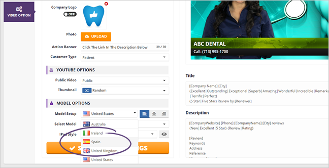 Step 4. On the Model Options section, select Spain as your Model Setup.