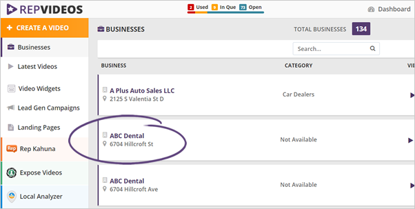 Step 1. First, select the business for which you want to create the video.