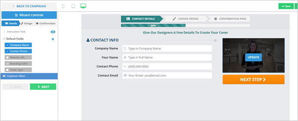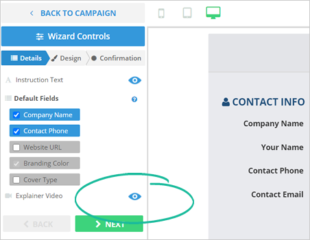 Step 5. Change the details of your wizard using the Wizard Controls. You can edit the Instruction Text, set the default fields, and update the wizard's Explainer Video.