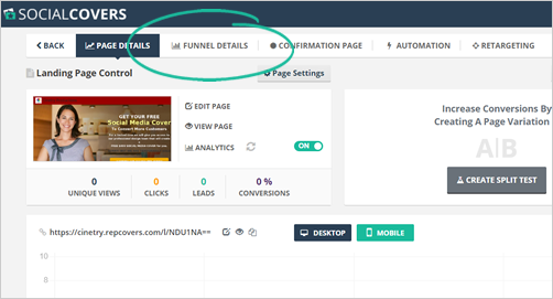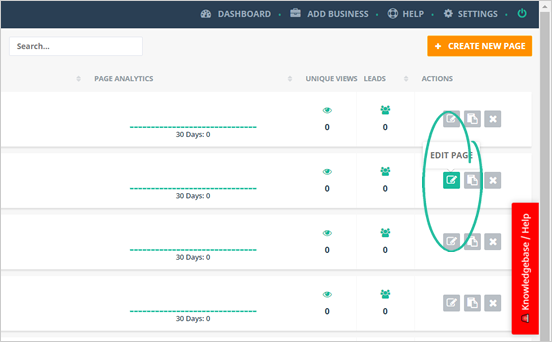Step 2. Click the Edit Page icon on the landing page that you want to setup.