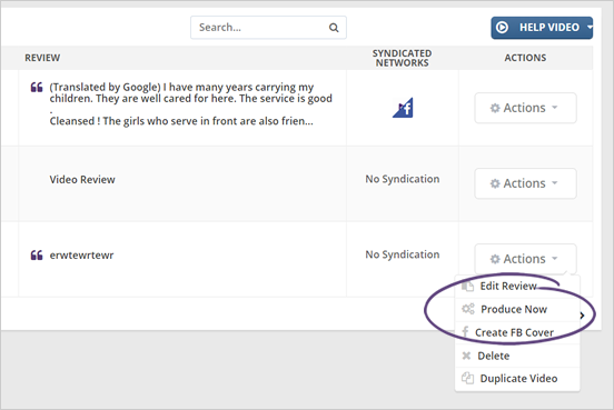 Step 8. You also have the option to produce the video today by clicking the Produce Now action.