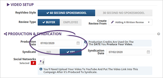 Step 4. Choose your Production date. If you have enabled your review’s syndication, pick a date as well.