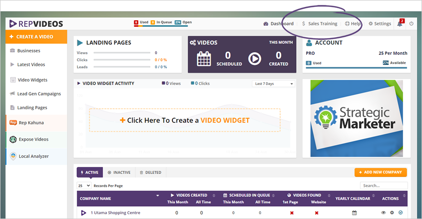 To access Sales Training, click the Sales Training tab found on your Rep Videos Main Page.