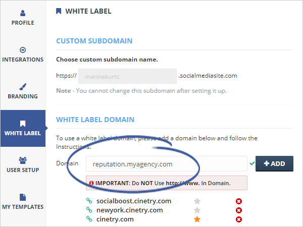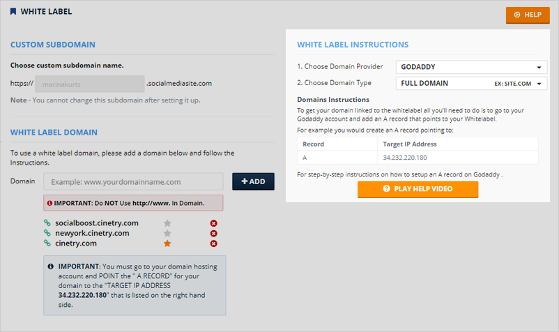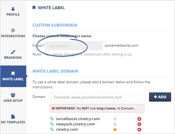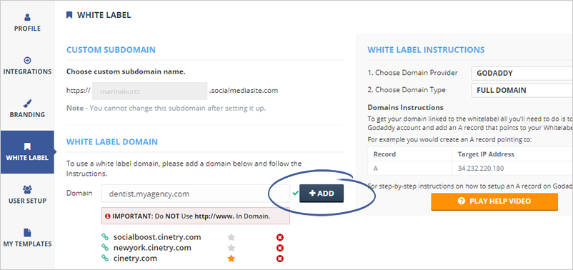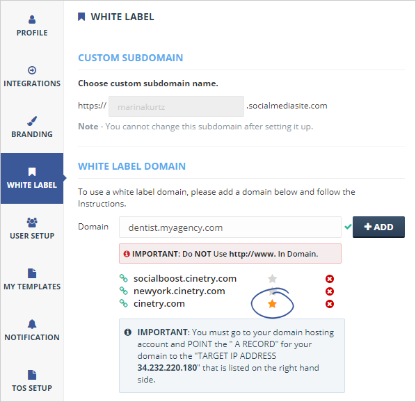 Step 4. If you already have a domain and you want to completely white-label your custom subdomain we provided, follow the details from the White Label Instructions section.
