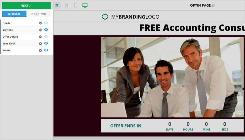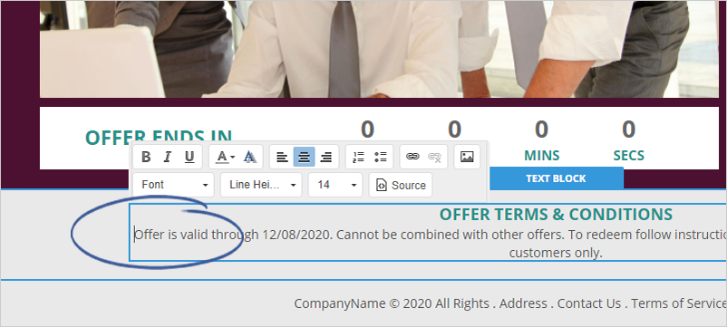 You will be able to update the Header, the Content, Offer Details, Text Blocks.