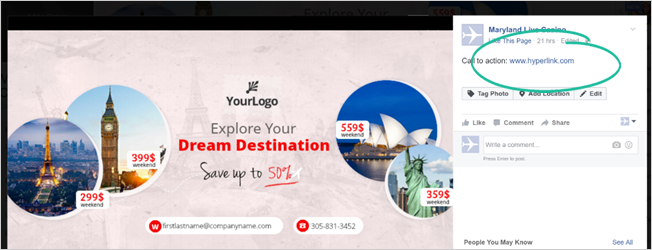 Remember, you can not directly add a hyperlink in your cover image to redirect viewers to a website. However, you can manually update the cover and add a call to action to the body of the post. Once you add a call to action line, like "Click Here" to the associated cover post, add the hyperlink in your description so that users can click it.