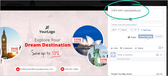 Step 3. Add your hyperlink into your call to action description then click Done Editing.