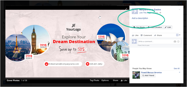 Step 1. Social Covers automatically creates a post on your Facebook Page. Click the actual cover to update it.
