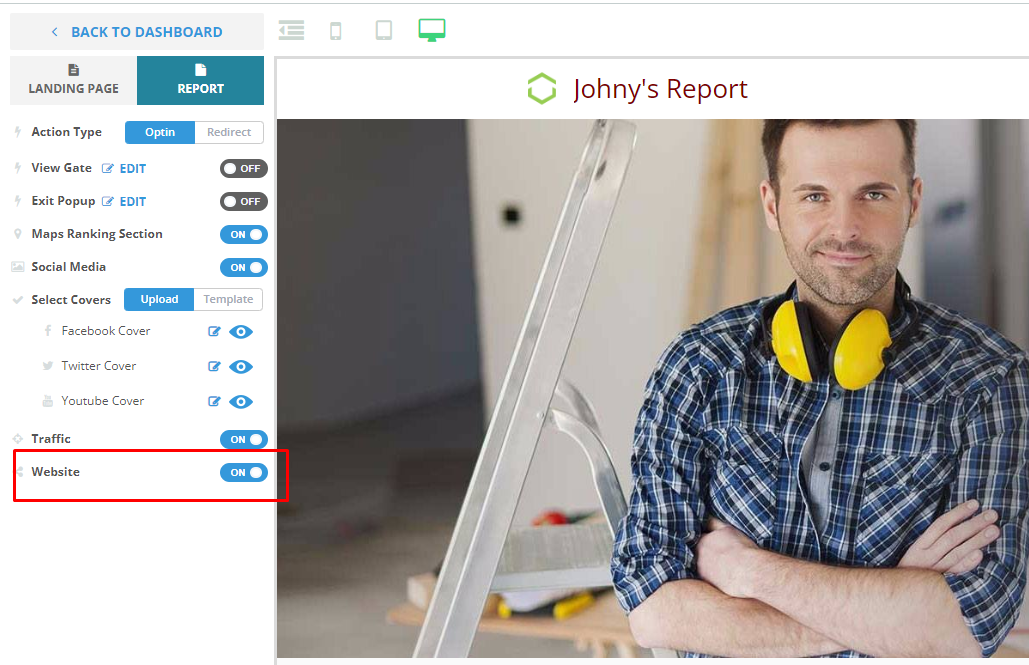 3. Enable the Website Review and SEO Audit section to the "ON" position:
