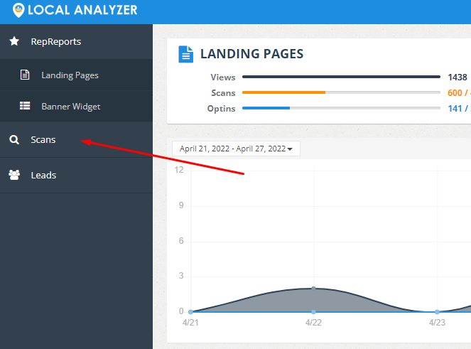 1. Navigate to the Dashboard and find "Scans" in the sidebar
