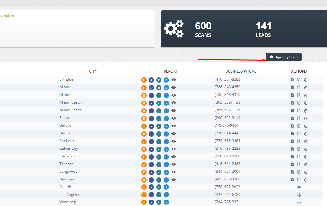 Now that the Website review is enabled, click "Create Report Scan" to create the report for a business that you would like to prospect.