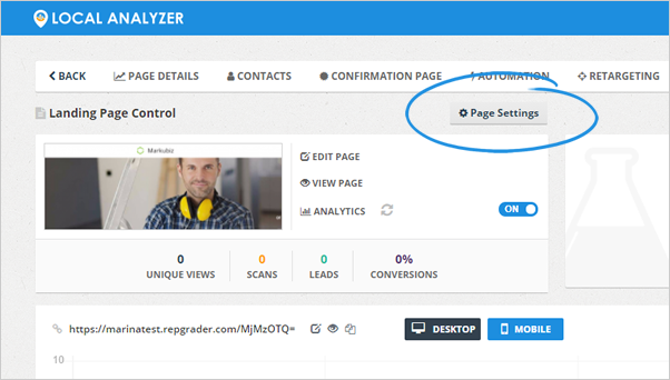 Whenever setting up a white-label for your Local Analyzer Landing Pages, we need to make sure that the Landing Page is assigned the domain you want the Landing Page to use. Additionally, the URL Extension also needs to be set. Without it, the Landing Page may not load.