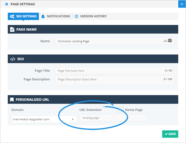 This URL shows after the forward-slash “/”. If this field is empty, the landing page will not load correctly.