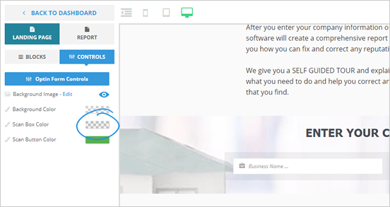 The Scan box color can be adjusted as well. Click on the color selection and then either select the color of your choice or make the opacity greater, so you can see the change in your optin box's shading. Once you are done, click Save.